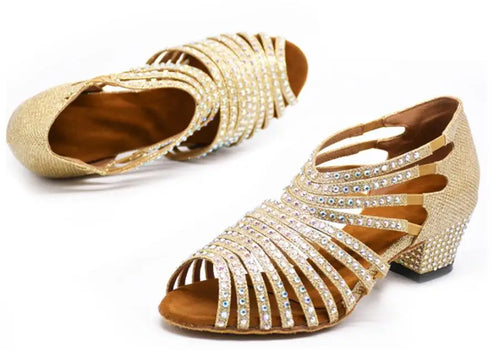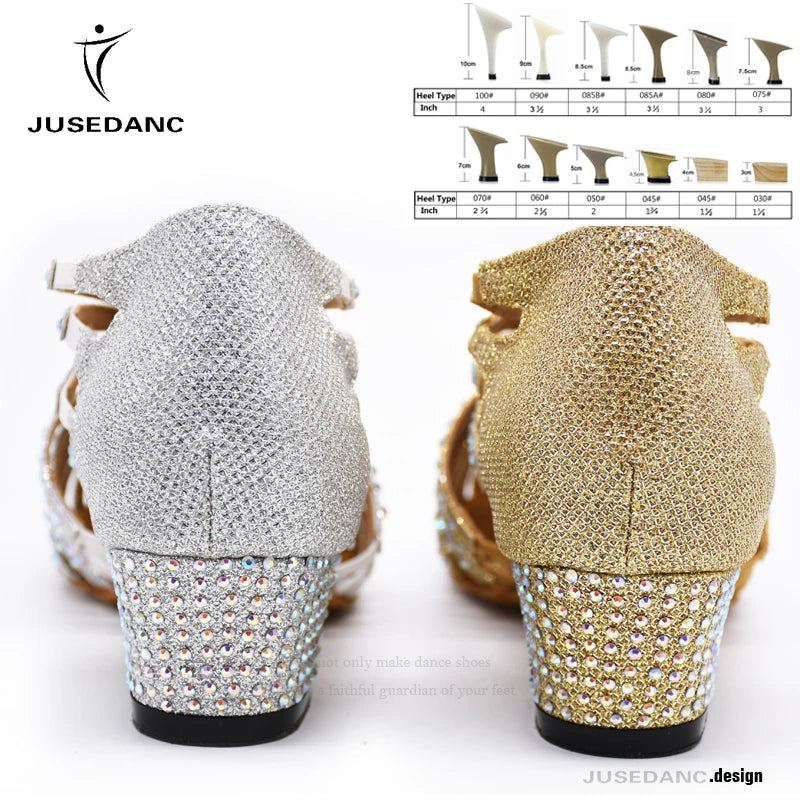 Ballroom Dance Shoes Women Rhinestone Dance Shoes Tango Dance Shoes Salsa Latin Shoes Middle Heel Silver Gold JuseDanc
